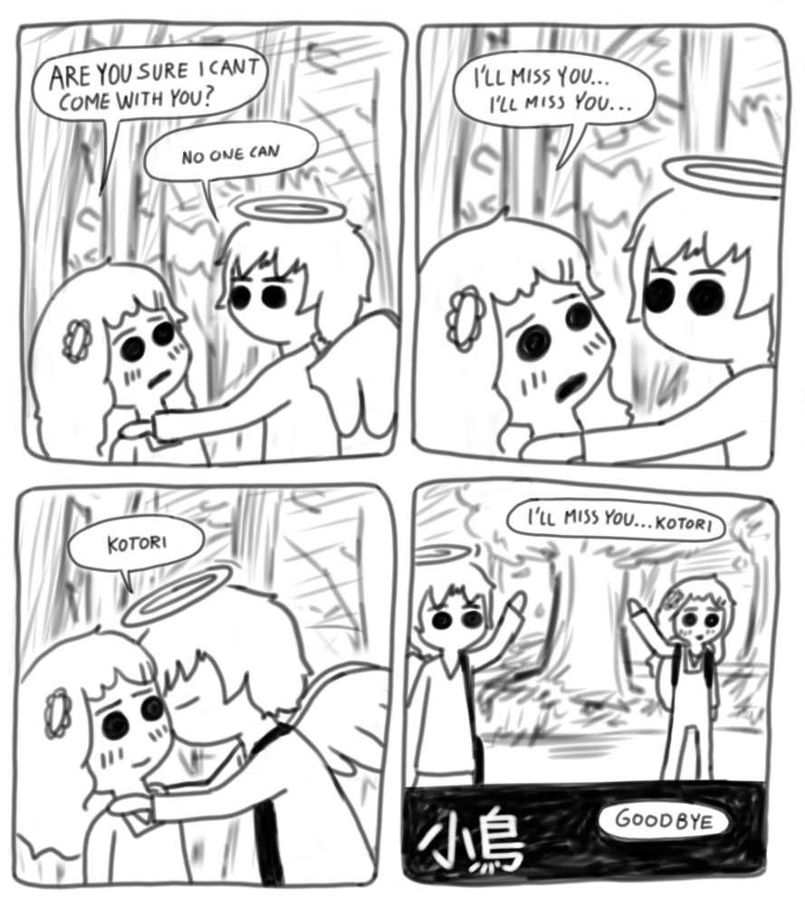 1. I feel kinda bad for K.C., seeing how quickly she clung onto kotori after he showed the slightest amount of kindness. Wonder what her life is like especially after that end sequence.